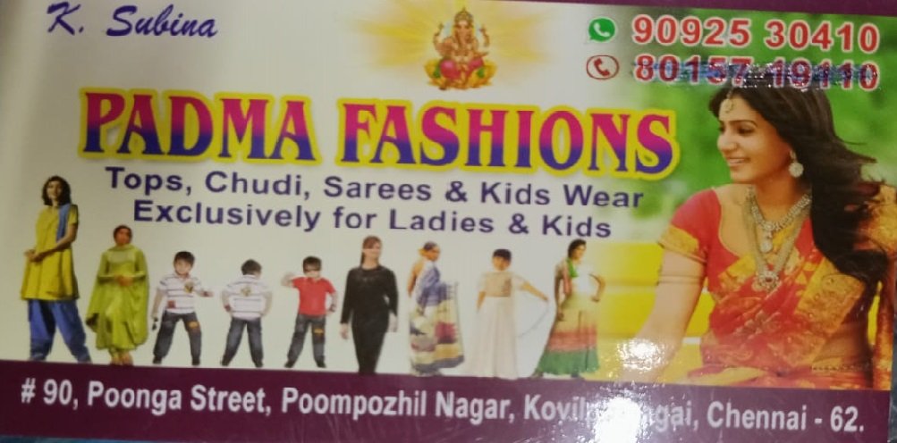 Padma Fashions is promoted by Padma Fashions at Chennai. We work hard to provide excellent customer service to all our clients.