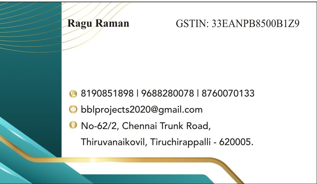 BBL Projects is promoted by Ragu Raman at Trichy. We work hard to provide excellent customer service to all our clients.