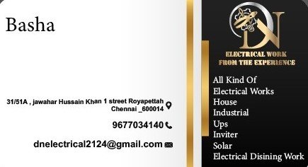 DN Electrical Work is promoted by Basha at Chennai. We work hard to provide excellent customer service to all our clients.