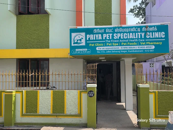 Welcome to Priya Pet Specialty Clinic, located at John Selvaraj Nagar, Kumbakonam — a dedicated center for complete and advanced veterinary care. We are committed to providing compassionate, ethical, and evidence-based services to ensure the health and happiness of your pets at every stage of life.