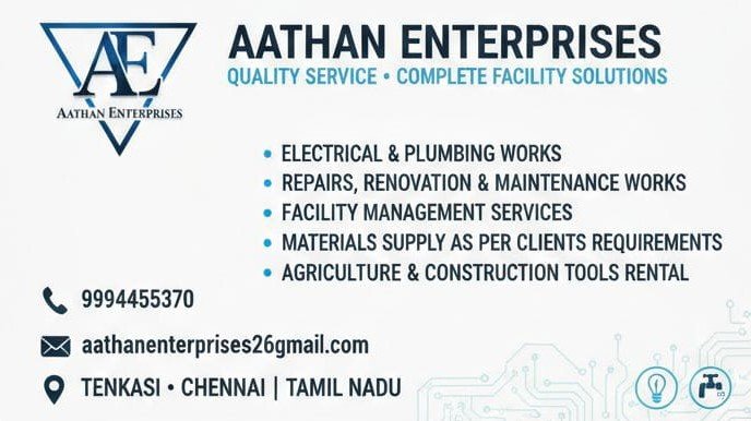 Welcome to Aathan Enterprises, your trusted partner for reliable quality service and complete facility solutions across Tenkasi, Chennai, and Tamil Nadu.