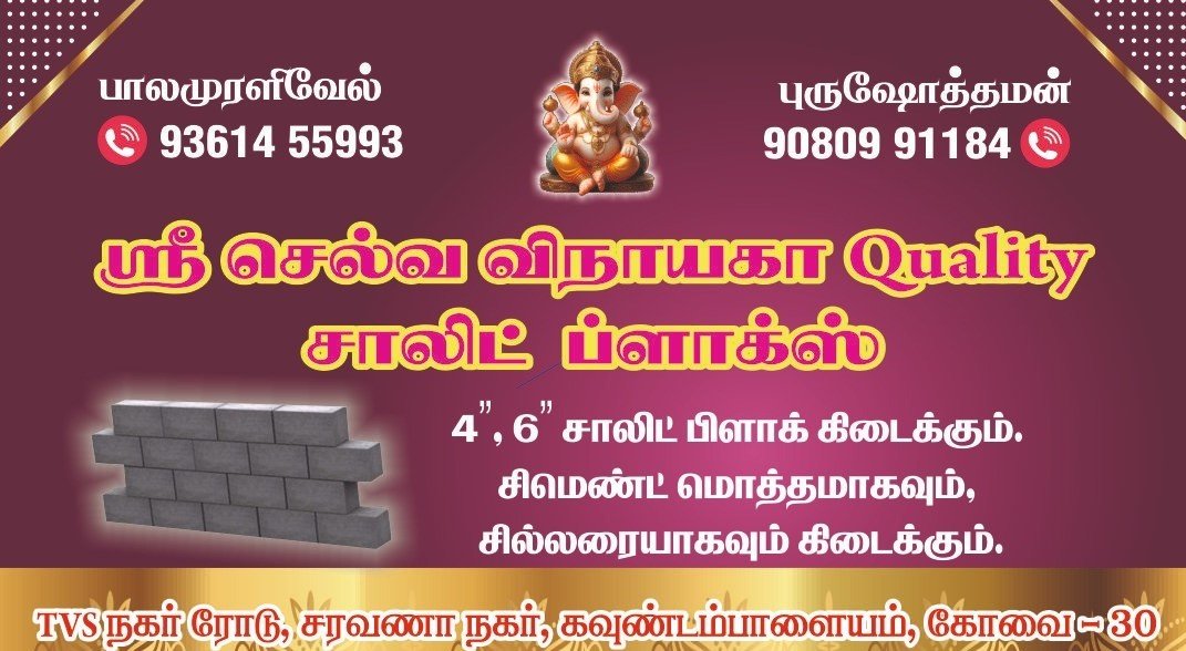 ஸ்ரீ செல்வ விநாயகா Quality சாலிட் ப்லாக்ஸுக்கு உங்களை இனிதே வரவேற்கிறோம்!