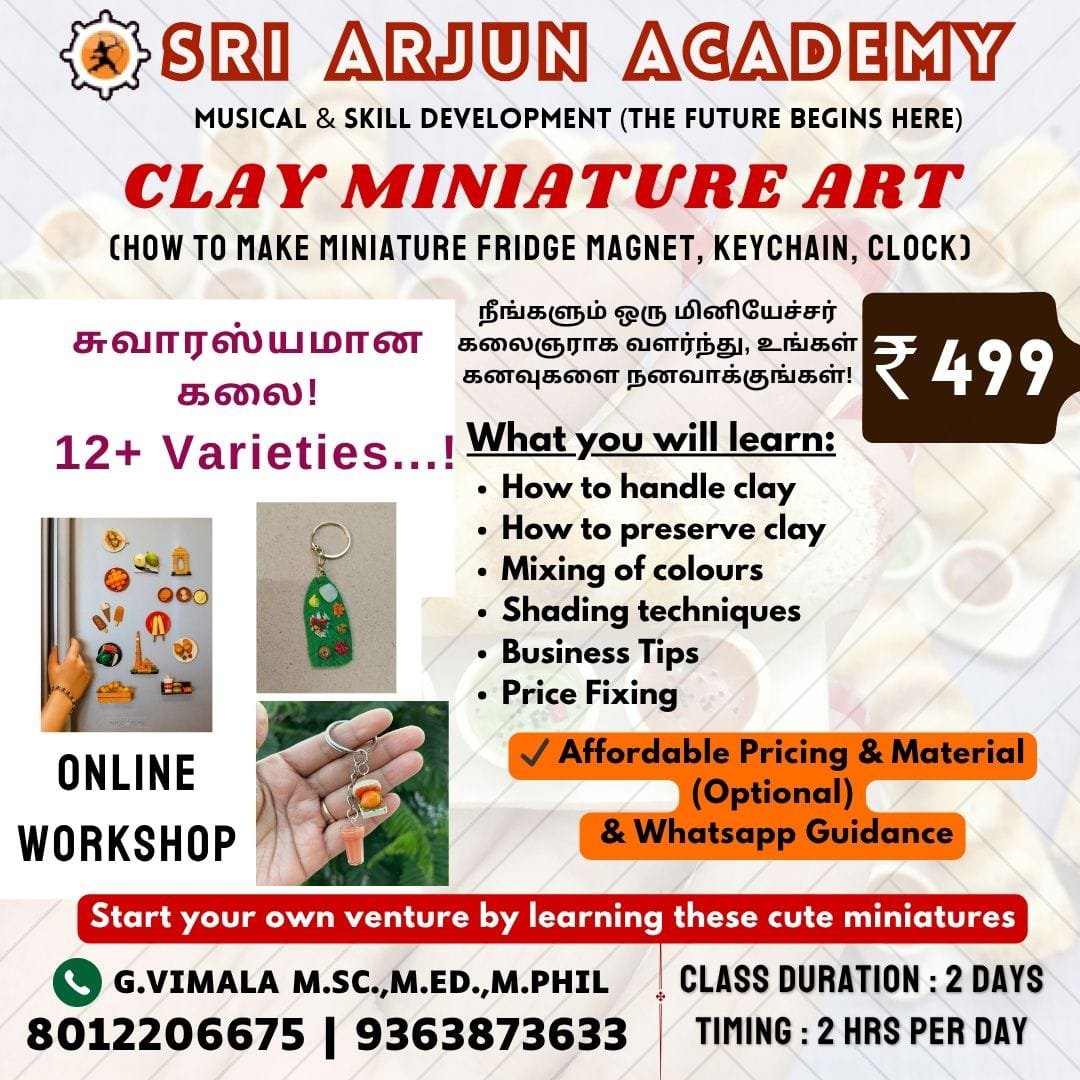 Tag: Brooch Designing, Cookies & Brownies, Chocolate Making Class, Cupcake Varieties Making, Clay Miniature Art, Resin Art, Basic to Advanced Aari Classes, Basic Jute Bag Making, Cotton Napkin Making, Saree Pre-Pleating Workshop, Small Grain Cookies & Brownies Making