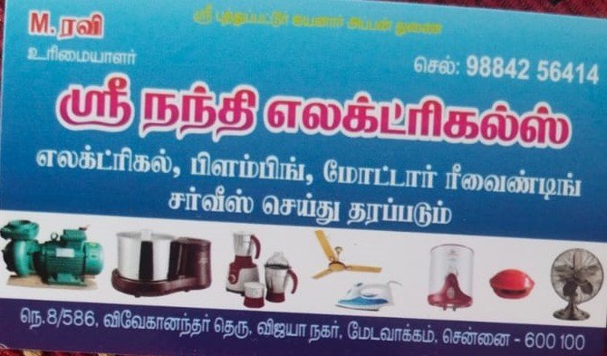Sri Nandhini Electricals is promoted by M.Ravi at Chennai. We work hard to provide excellent customer service to all our clients.
