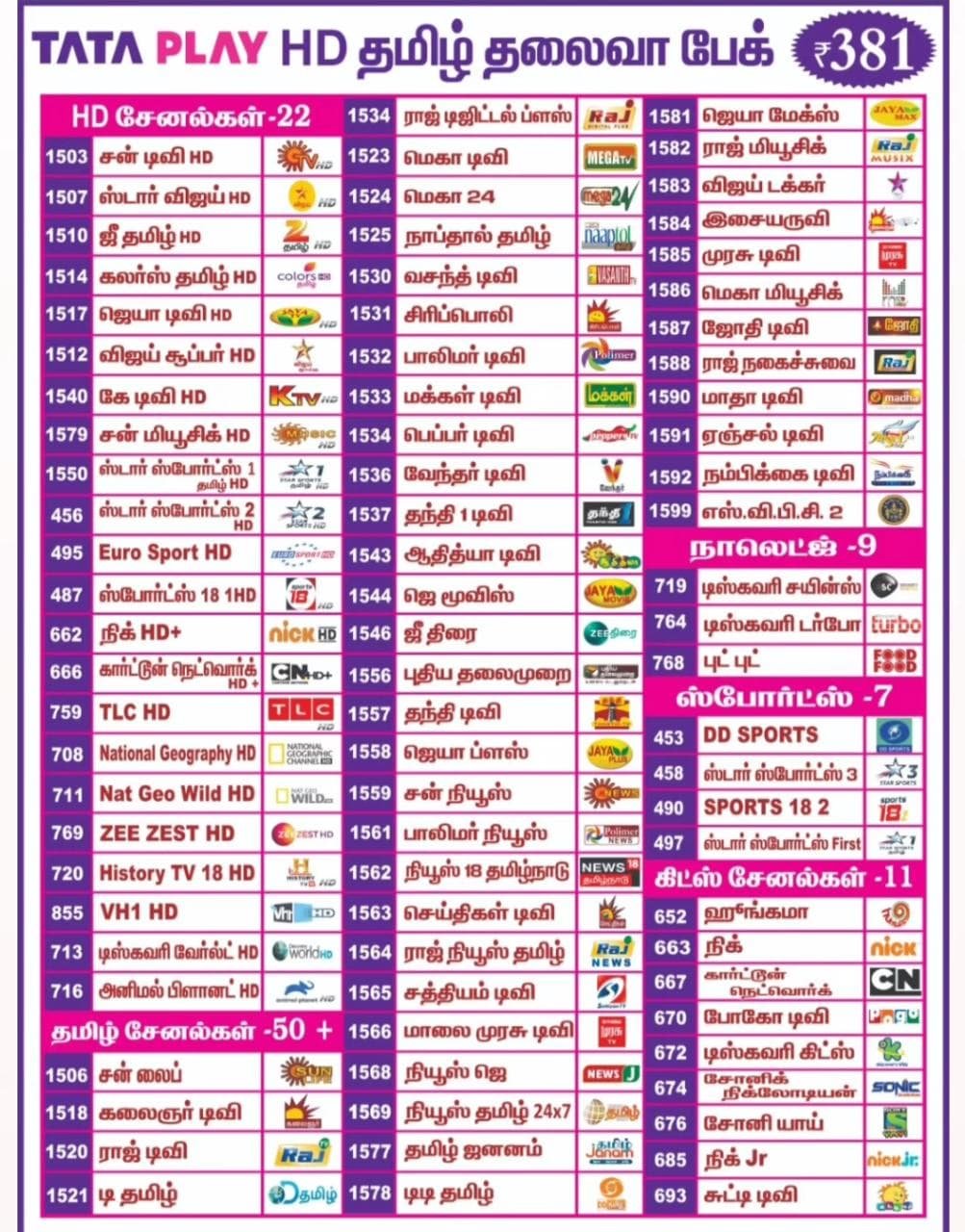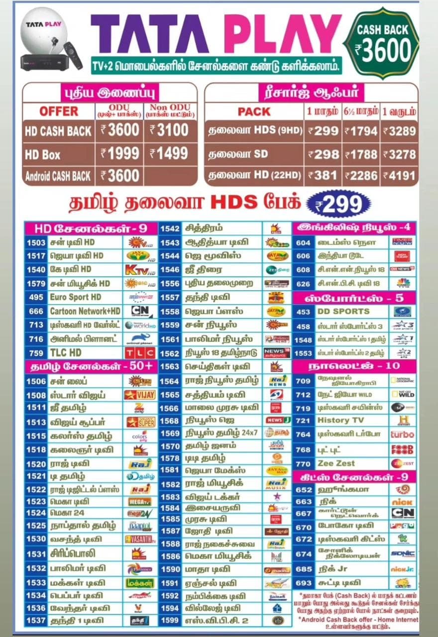 - TATA P lay / ஏர்டெல். விடியோகான் D2H & டிஷ் TV
