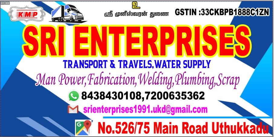 காஞ்சிபுரத்தில் திரு. முனிராஜ் பாலாஜி அவர்களால் நிர்வகிக்கப்படும் SRI Enterprises, தனது வாடிக்கையாளர்களுக்கு உயர்தரமான மற்றும் சிறப்பான சேவைகளை வழங்குவதில் அர்ப்பணிப்புடன் செயல்படுகிறது. நம்பகத்தன்மை மற்றும் தொழில்முறைத் திறனை மையமாகக் கொண்டு செயல்படும் இந்த நிறுவனம், இப்பகுதியில் வாடிக்கையாளர் திருப்தி மற்றும் செயல்திறனில் ஒரு சிறந்த நற்பெயரைப் பெற்றுள்ளது.