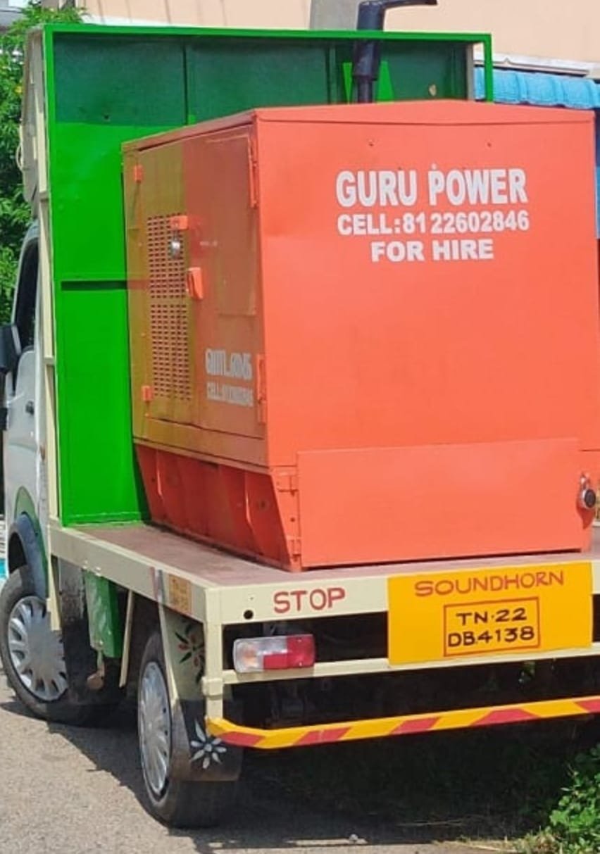 எங்களிடம் சுப நிகழ்ச்சிகள், கான்ஸ்ட்ரக்ஷன் ஒர்க்ஸ், மற்றும் கம்பெனிகளுக்கும் தேவையான பவர் ஜெனேரேட்டர், மொபைல் ஜெனேரேட்டர் மற்றும் லீஸ் ஜெனேரேட்டர் உள்ளிட்ட அனைத்து ஜெனேரேட்டர்களும் குறைந்த வாடைக்கு சிறந்த முறையில் கிடைக்கும்.