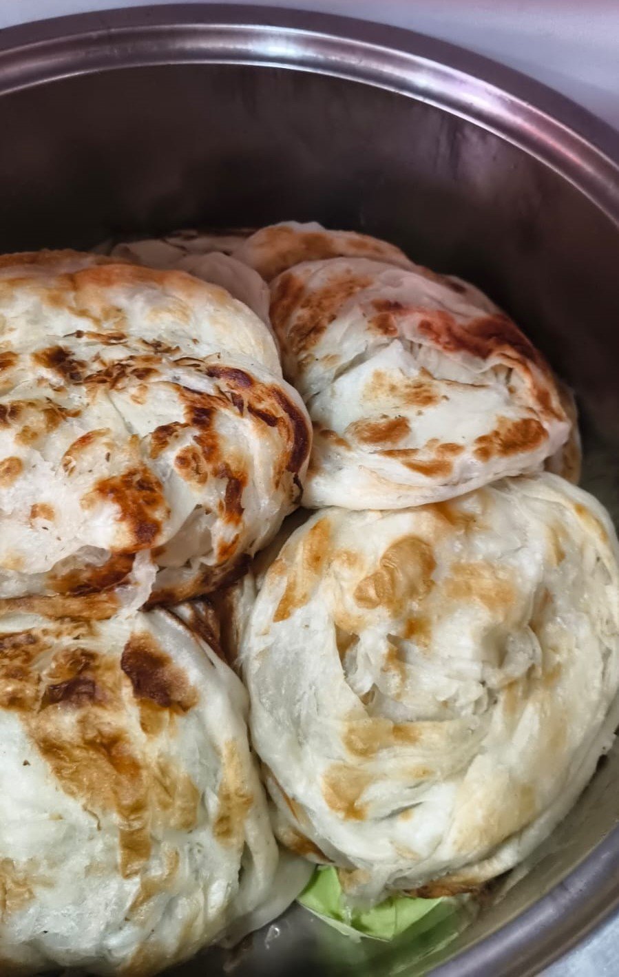 Parota: Soft, layered Indian bread served hot and fresh