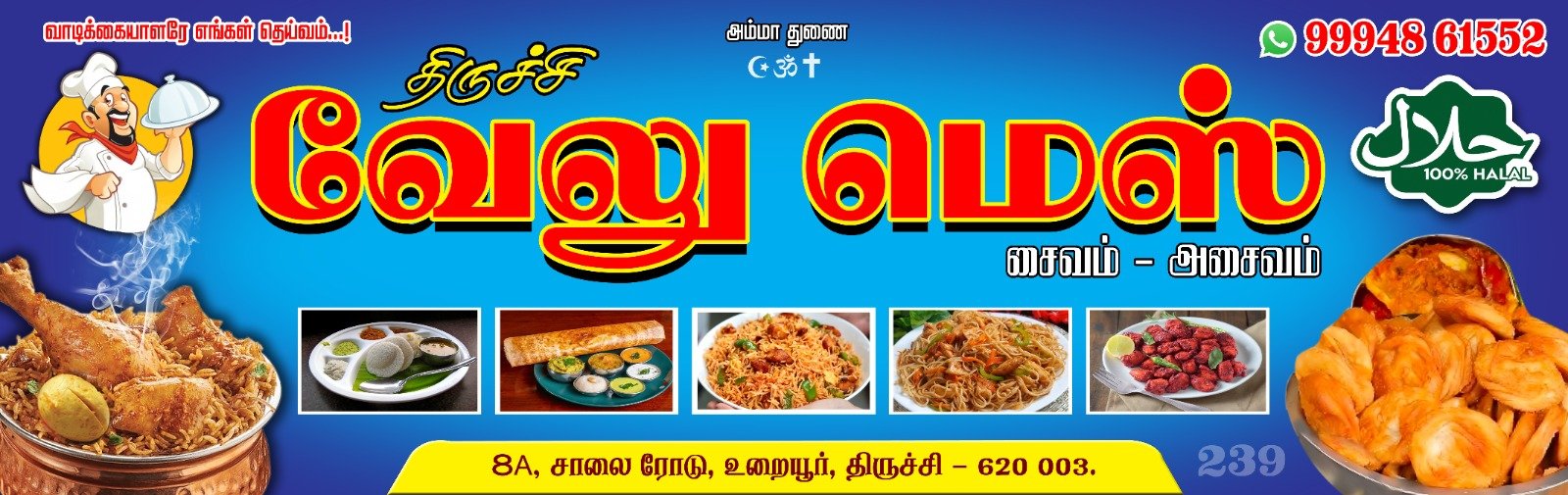 Contact us today to book your order and experience the taste of Trichy Velu Mess – because great food makes every occasion special!
