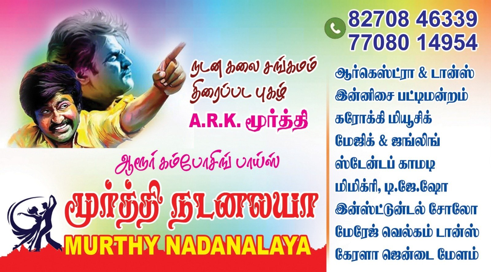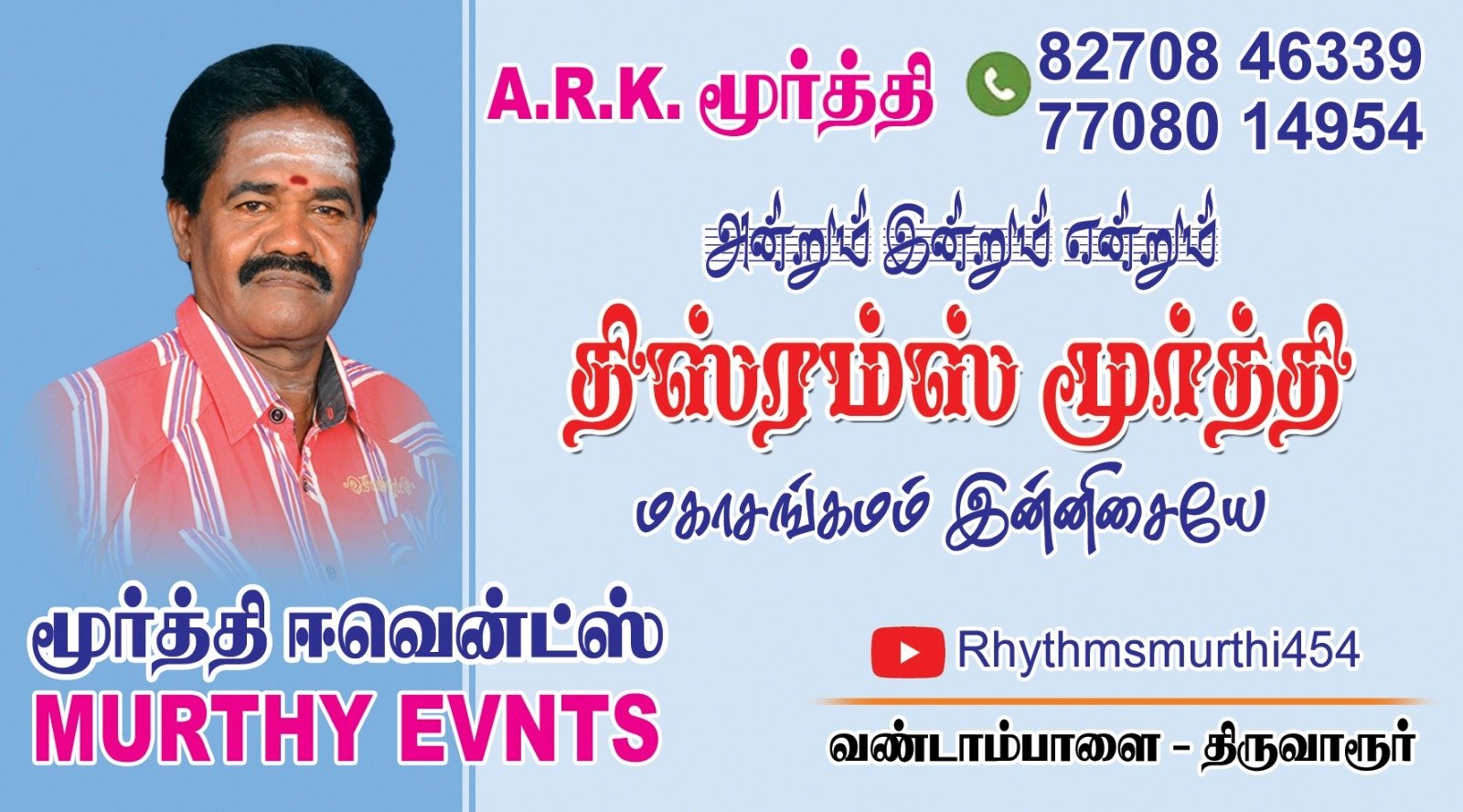 Murthy Events is promoted by A.R.K.Murthy at Thiruvarur. We work hard to provide excellent customer service to all our clients.