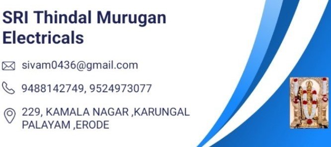 Sri Thindal Murugan Electricals is promoted by Sivamani at Erode. We work hard to provide excellent customer service to all our clients.