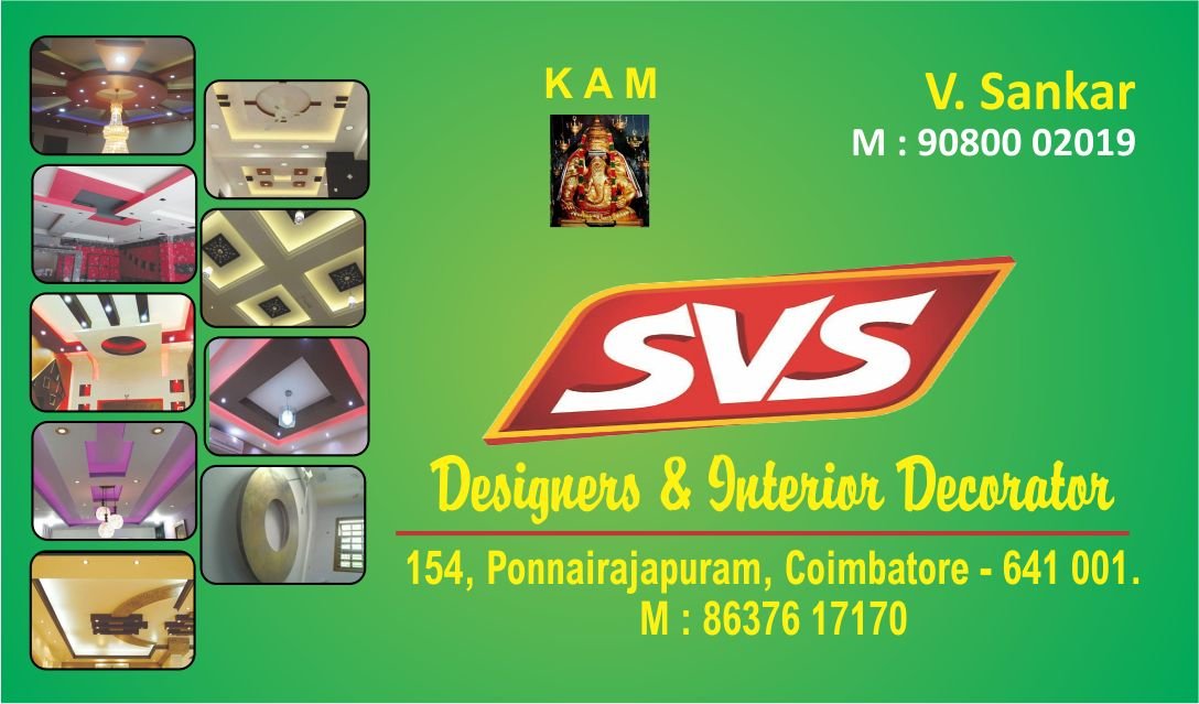 SVS Designers & Interior Decorator is promoted by V.Sankar at Coimbatore. We work hard to provide excellent customer service to all our clients.
