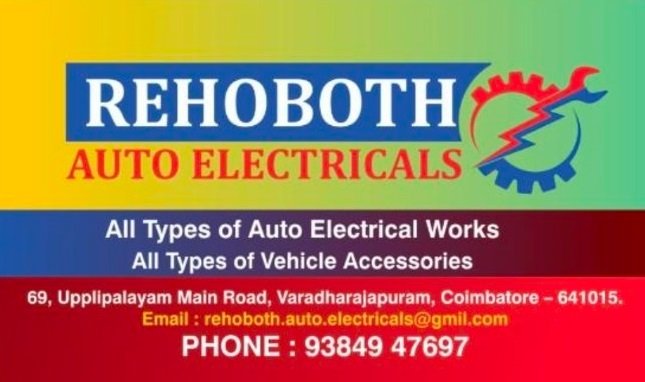 Rehoboth Auto Electricals is promoted by Rehoboth Auto Electricals at Coimbatore. We work hard to provide excellent customer service to all our clients.