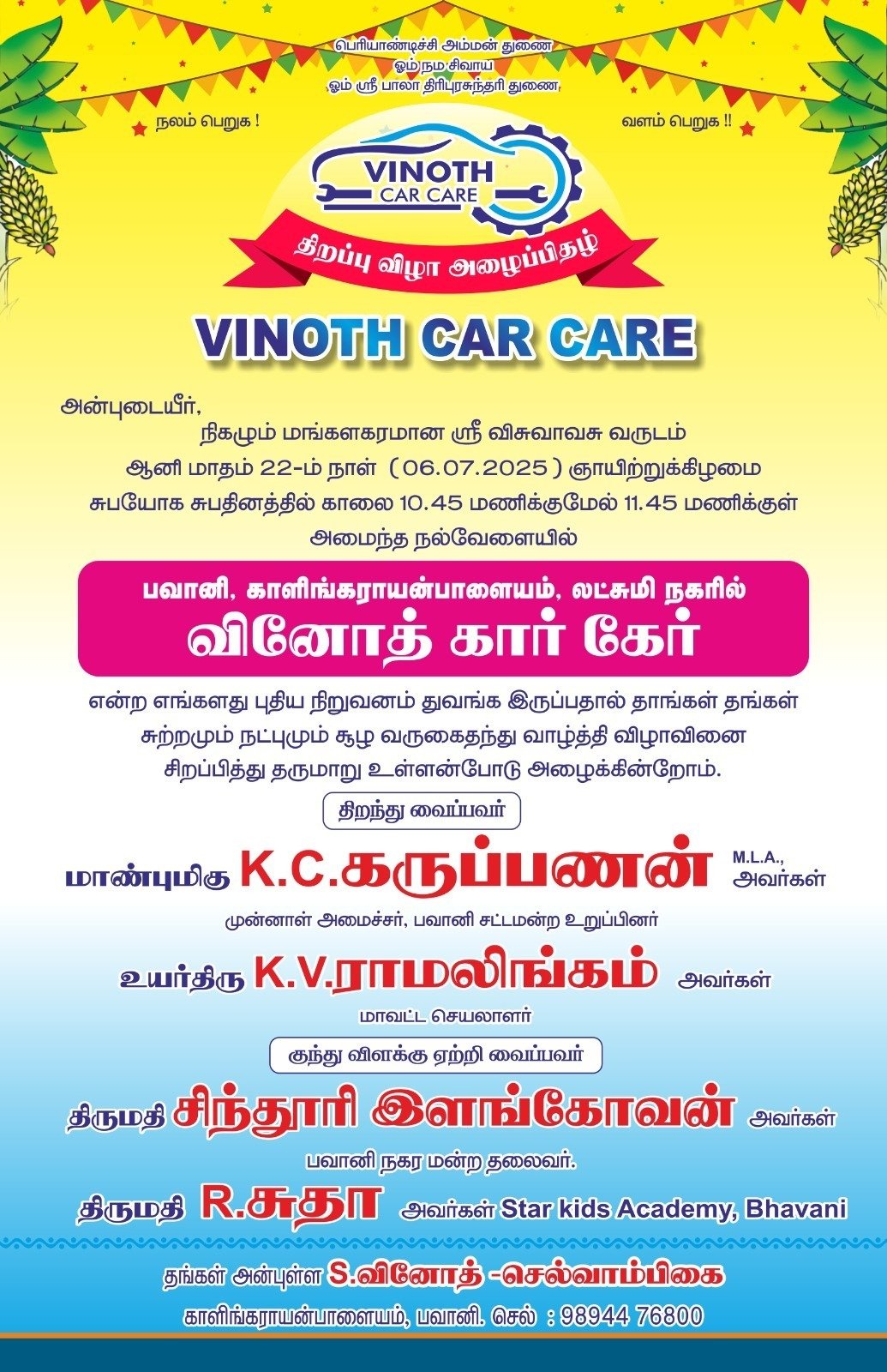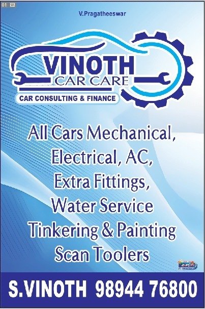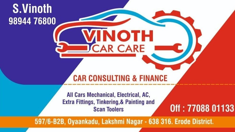 Vinoth Car Care is promoted by S.Vinoth at Erode. We work hard to provide excellent customer service to all our clients.