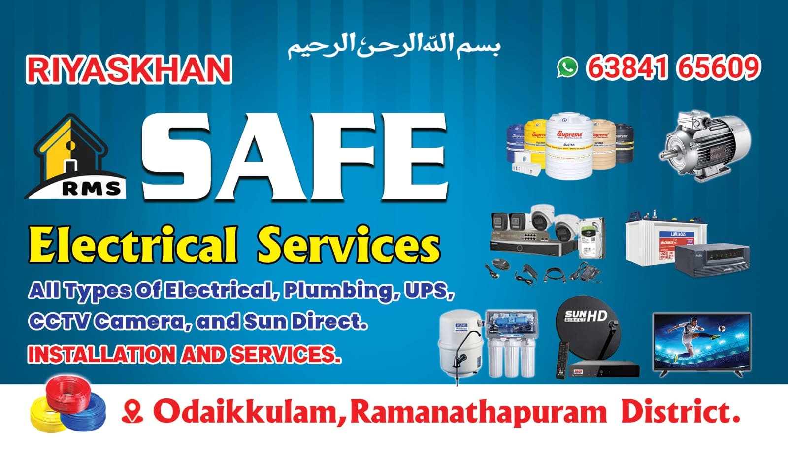 RMS Safe Electrical Services is promoted by Riyaskhan at Ramanathapuram. We work hard to provide excellent customer service to all our clients.